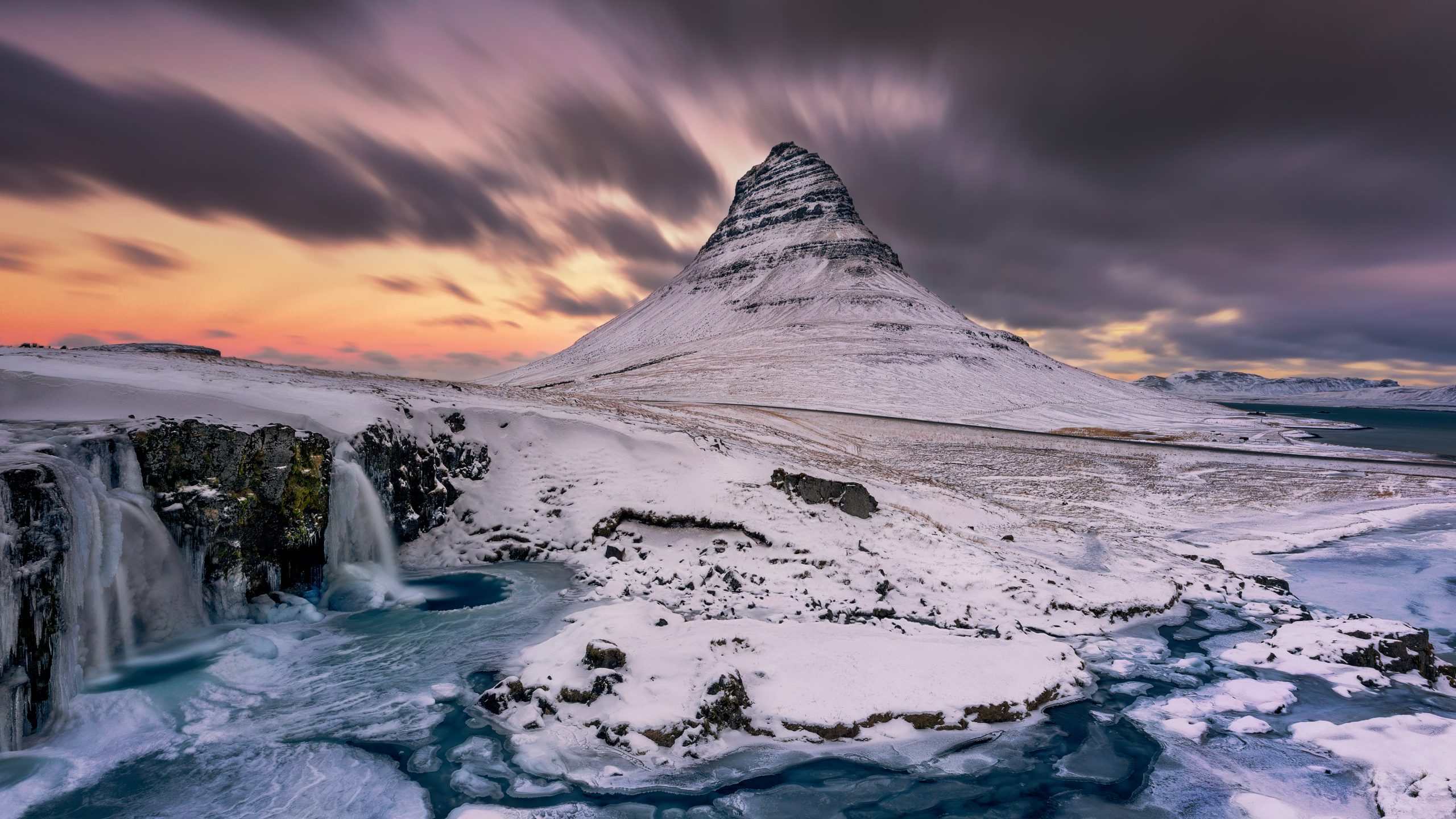 Kirkjufell, meaning “Church Mountain,” is one of Iceland’s most photographed natural landmarks. Located on the north coast of the Snæfellsnes Peninsula, this uniquely shaped, cone-like mountain rises dramatically from the coastline, often mirrored in the calm waters below. Paired with the nearby Kirkjufellsfoss waterfall, it creates an iconic and picture-perfect Icelandic scene.